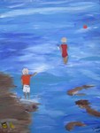 Strand en zee schilderijen, gemaakt n.a.v. vakanties. Geschilderd met acrylverf.